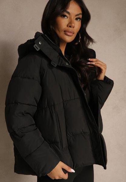 Czarna Pikowana Kurtka o Fasonie Oversize z Kapturem Galadea