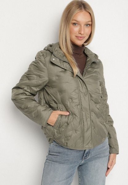 Jasnozielona Przejściowa Kurtka z Geometrycznym Pikowaniem i Kapturem Arevitta