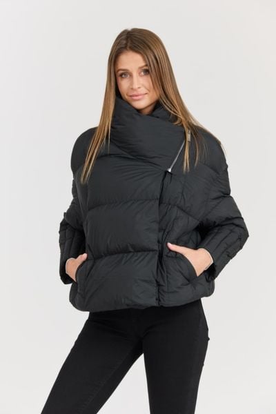 DIEGO M Czarna damska kurtka Giubbino Micropiuma – Collo Con Zip, Rozmiar S