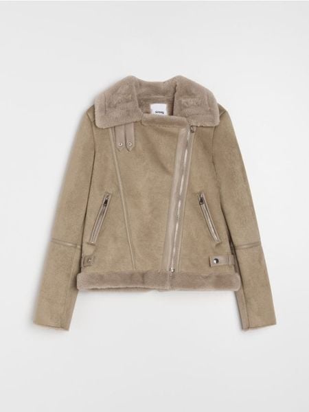 Sinsay – Kurtka ramoneska z ocieplanym kożuszkiem – brązowy –