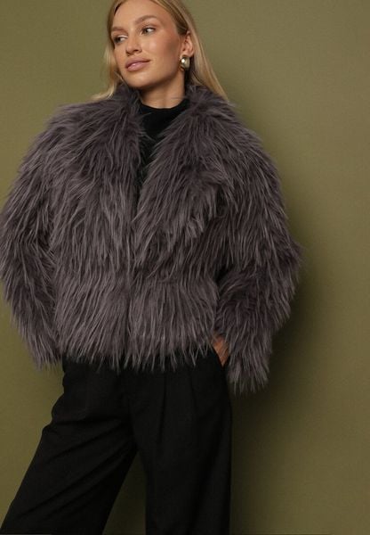 Szara Kurtka Futrzana z Długim Włosiem Calorte