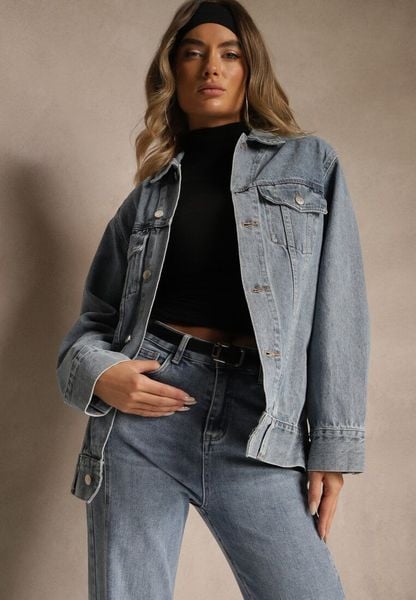 Niebieska Kurtka Jeansowa o Casualowym Fasonie Belissen