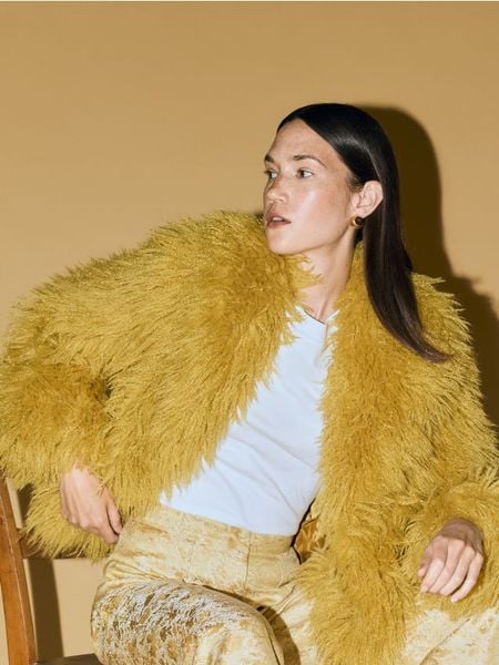 Kurtka o swobodnym fasonie, wykonana z imitacji futra.