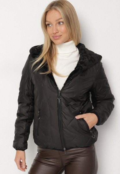 Czarna Pikowana Kurtka z Kapturem o Dwustronnym Kroju Tahalia