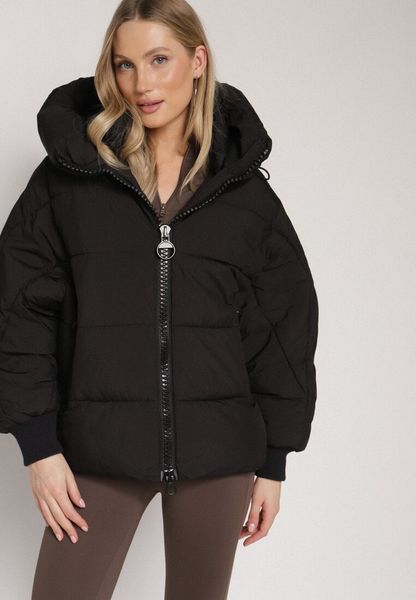 Czarna Pikowana Kurtka o Kroju Oversize z Kapturem Mevisana