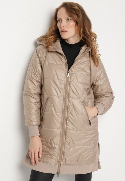 Beżowa Pikowana Kurtka Przejściowa z Kapturem i Ściągaczami Fesarena