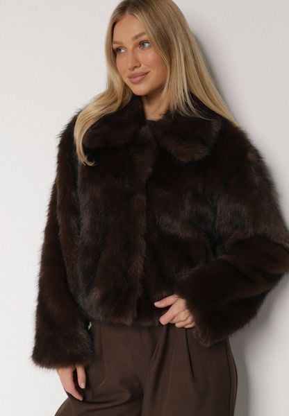 Brązowa Krótka Kurtka Futerko z Kołnierzem Anantia