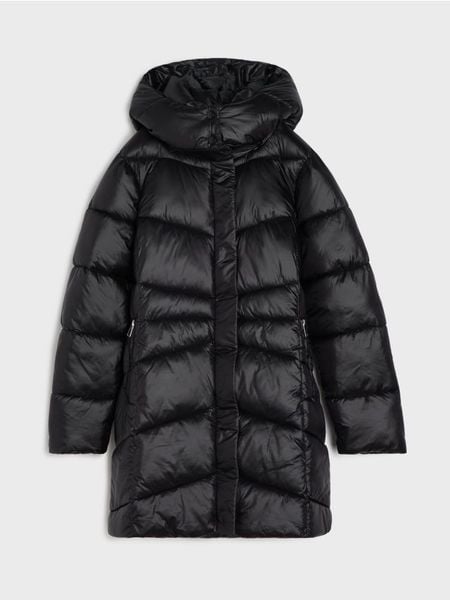 Sinsay – Długa pikowana kurtka z odpinanym kapturem – czarny –