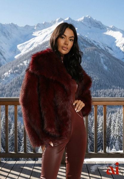 Bordowa Elegancka Kurtka Futerko z Kołnierzem Vertirida