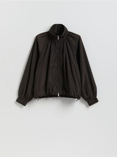 Kurtka o swobodnym kroju, wykonana z gładkiej tkaniny.