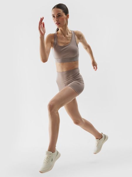 4F Legginsy krótkie treningowe z materiału z recyklingu damskie – beżowe XS