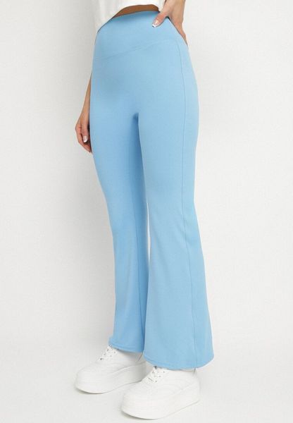 Niebieskie Spodnie Legginsy Typu Dzwony z Wysokim Stanem Melonell