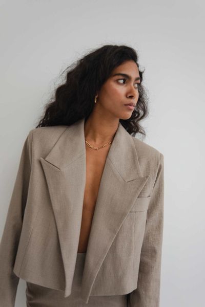 Krótka marynarka z lnem w kolorze CAPPUCCINO – MOOSE-S/M