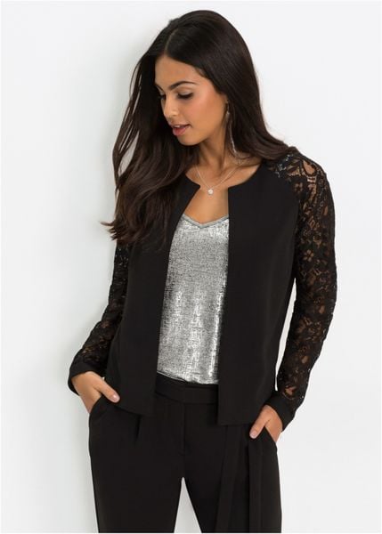 Atrakcyjny żakiet z okrągłym dekoltem i długimi rękawami z koronki. Piękne wdzianko z rękawami koronkowymi z kolekcji Bodyflirt, zamieni każdą stylizację w wyjątkową. Dł. w rozm. 38 ok. 54 cm, dł. w rozm. 42 ok. 56 cm. Można prać w pralce.
