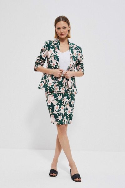 61%POLIESTER, 36%BAWEŁNA, 3%ELASTAN Marynarka, wielokolorowy, zielony, kwiaty, poliester, marszczone rękawy, kieszene, rękaw 3/4, Elegancka (na specjalną okazję), Do pracy,