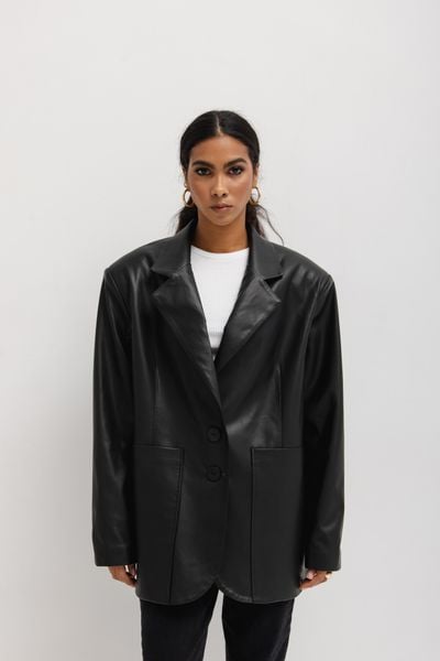 Marynarka oversize z eko skóry w kolorze CZARNYM – HARLEY LEATHER-M/L