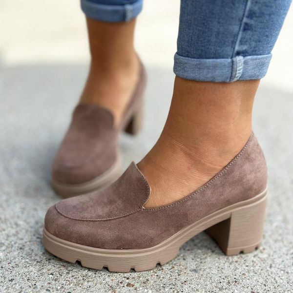 Zamszowe półbuty damskie na słupku, mokasyny Potocki 12040 Kh