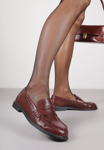 Bordowe Marszczone Mokasyny Vices ze Skórzaną Wkładką Nestia