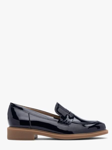 Granatowe lakierowane mokasyny na beżowym spodzie