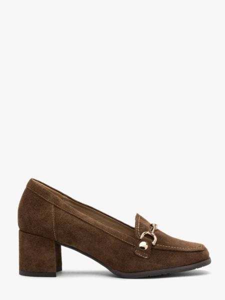 Brązowe mokasyny na słupku z łańcuszkiem
