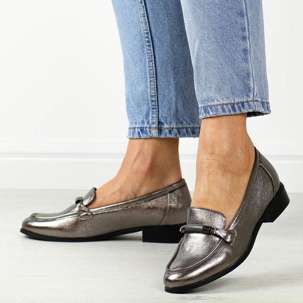 Srebrne pw półbuty damskie, mokasyny Potocki 12065