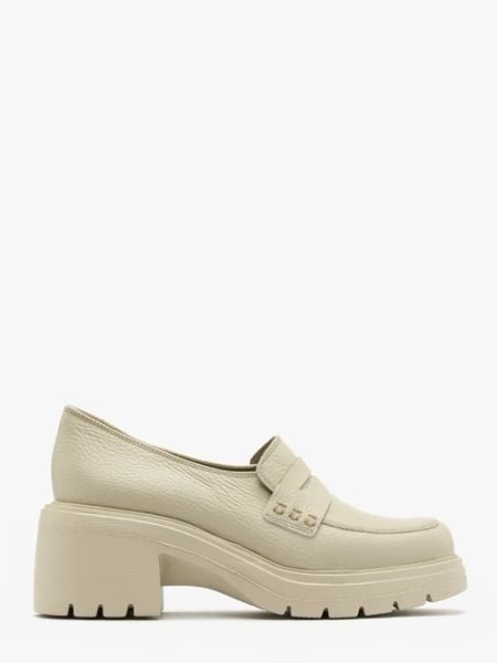 Kremowe mokasyny na obcasie