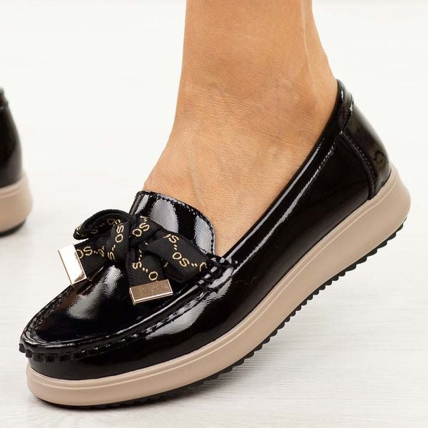 Czarne lakierowane skórzane mokasyny damskie Filippo Dp6457/25