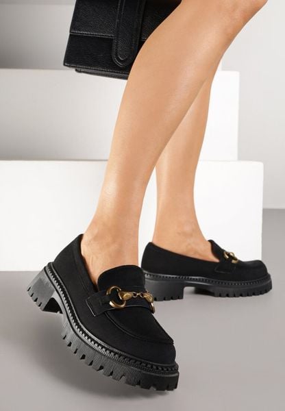 Czarne Mokasyny Ozdobione Klamrą Drekkia