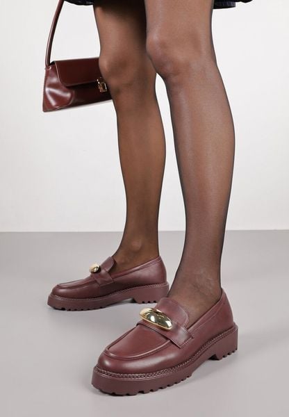 Bordowe Mokasyny Vices z Wkładką ze Skóry Naturalnej z Metaliczną Aplikacją Fergia