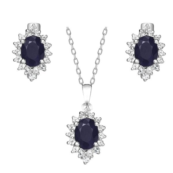 KATE komplet srebrnej biżuterii szafiry kolczyki naszyjnik