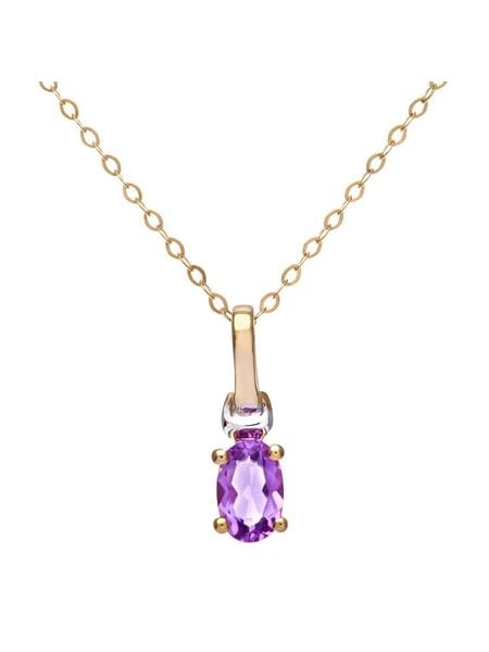 – materiał: 9-karatowe złoto próby 375- typ łańcuszka: ankier- rodzaj kamienia: ametyst- kolor kamienia: fioletowy- kształt zawieszki: kroplaWskazówka: Zdjęcie produktu w powiększeniu.