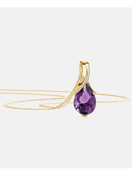 – materiał: 9-karatowe złoto próby 375- kształt zawieszki: kropla- rodzaj kamienia: ametyst- kolor kamienia: fioletowyWskazówka: Zdjęcie produktu w powiększeniu.