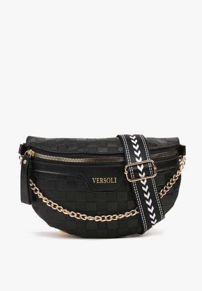 Czarna Tłoczona Nerka z Łańcuszkiem i Dodatkowym Szerokim Paskiem Alisvara