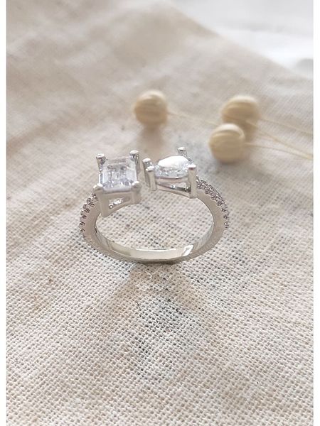 – materiał: mosiądz- powłoka: 14K białe złoto- rodzaj kamienia: cyrkonia- kolor kamienia: bezbarwny- rozmiar: regulowanyWskazówka: Zdjęcie produktu w powiększeniu.