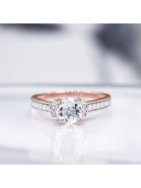 – materiał: 9-karatowe różowe złoto próby 375- kamień 1: diament- karat: 0,291- kamień 2: topazWskazówka: Zdjęcie produktu w powiększeniu.