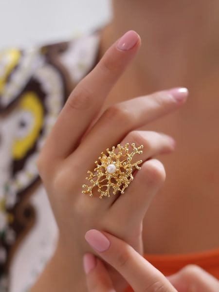 Pierres delicates Pozłacany pierścionek z perłą rozmiar: onesize