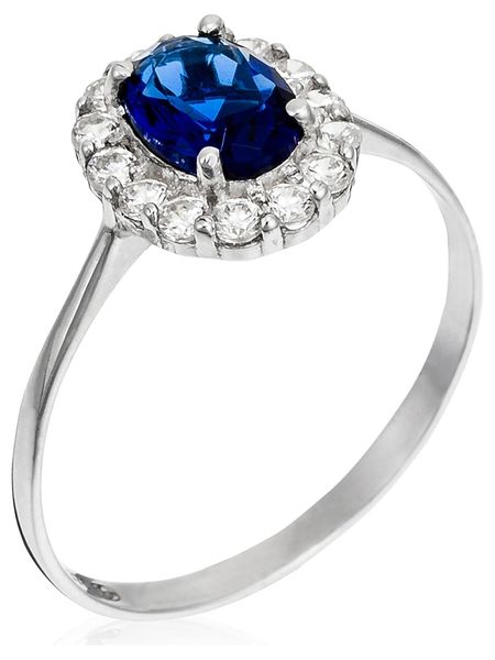 – materiał: 9-karatowe białe złoto próby 375- rodzaj kamienia: cyrkonia- kolor kamienia: bezbarwny, niebieskiWskazówka: Zdjęcie produktu w powiększeniu.