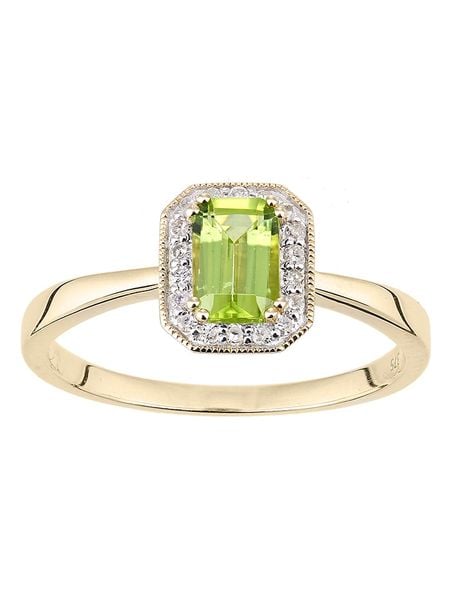 – materiał: 9-karatowe złoto próby 375- kamień 1: diament- kolor kamienia: bezbarwny (H-I)- czystość: I2-l3- liczba karatów: 0,08- kamień 2: peridot- kolor kamienia: zielonyWskazówka: Zdjęcie produktu w powiększeniu.