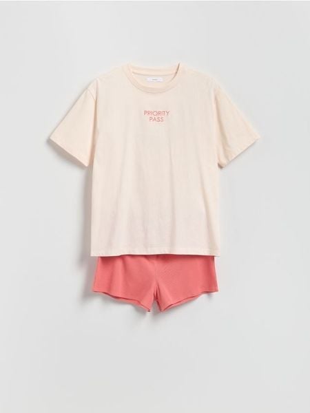 Dwuczęściowa piżama o swobodnym kroju, wykonana z bawełny.