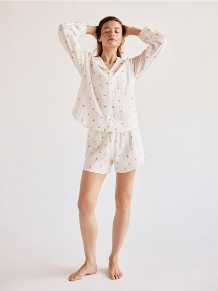 Piżama składająca się z koszuli i szortów, uszyta z bawełny.