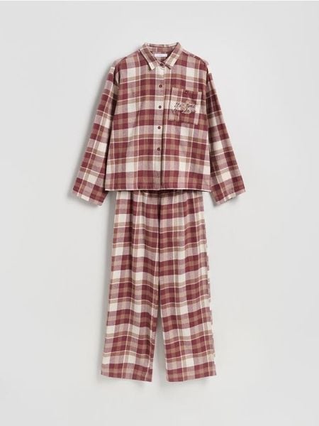 Piżama składająca się z koszuli i spodni, wykonana z bawełny.
