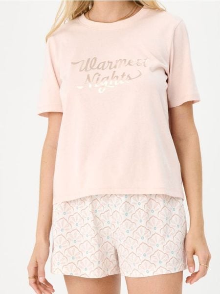 Sinsay – Piżama dwuczęściowa z połyskującym napisem – beżowy –