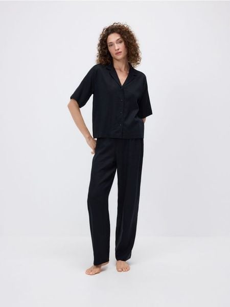 Dwuczęściowa piżama z dodatkiem lnu – czarny