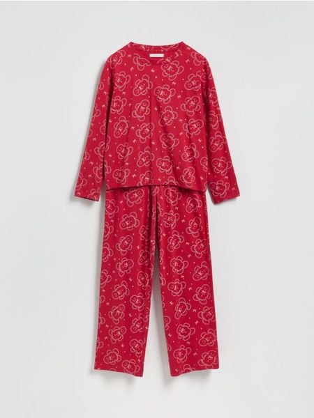 Piżama o swobodnym kroju, wykonana z bawełnianej dzianiny.