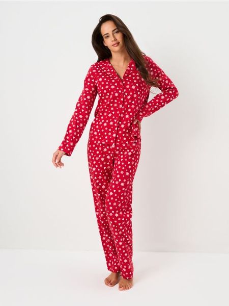 Sinsay – Bawełniana piżama dwuczęściowa ze wzorem – czerwony –