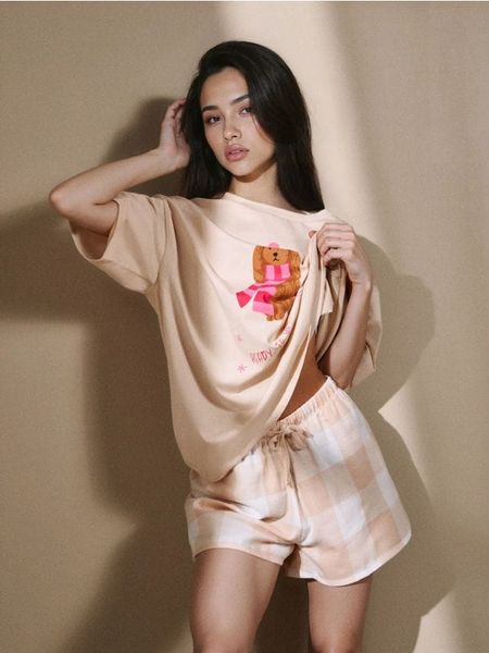 Sinsay – Dwuczęściowa piżama z pieskiem w zimowym szaliku – kremowy –