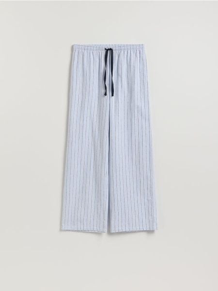Spodnie o swobodnym fasonie, wykonane z bawełnianej tkaniny.