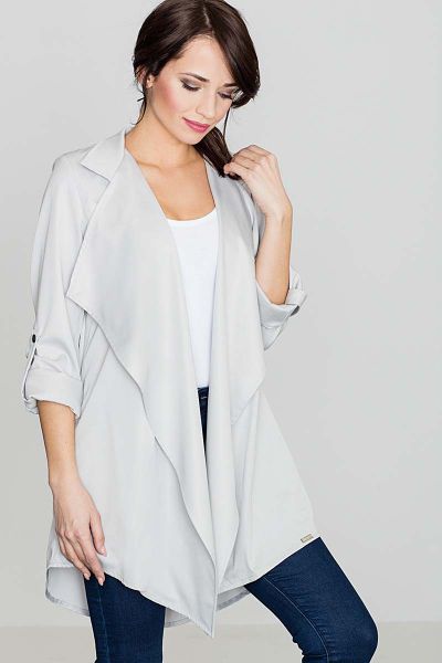 Szary Luźny Krótki Płaszcz bez Zapięcia