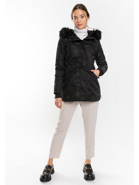 – kaptur: tak- wstawka ze sztucznego futerka: tak- kołnierz: stójka- zapięcie: suwak- zakończenie rękawów: elastyczne- talia: wewnętrzny ściągacz tunelowy- wpuszczane kieszenie: 2- dolny brzeg: suwak- krój: prosty- wzór: moroUwaga: Ten produkt zalecamy zamawiać w rozmiarze o jeden numer większym niż zwykle.