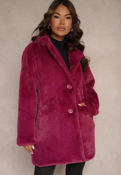 Fioletowy Futrzany Płaszcz Jednorzędowy z Podszewką i Kieszeniami Daithianne